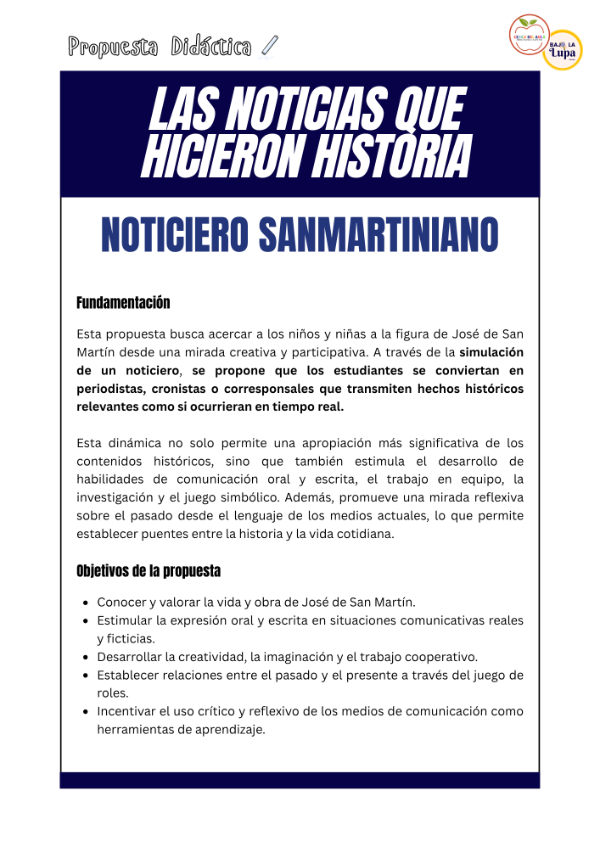 * Propuesta pedagógica completa para organizar un Noticiero Sanmartiniano