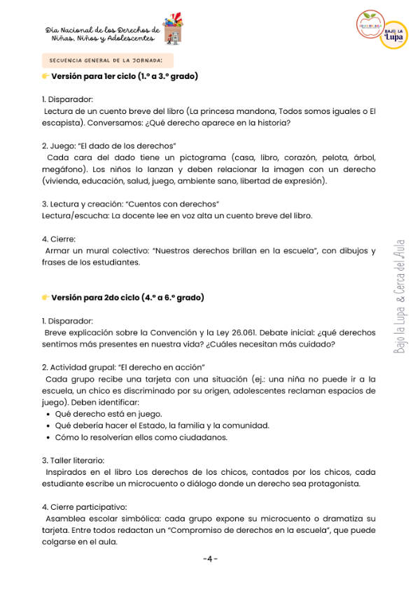 Este material, creado en colaboración entre Bajo la Lupa y Cerca del Aula, ofrece propuestas diferenciadas para: