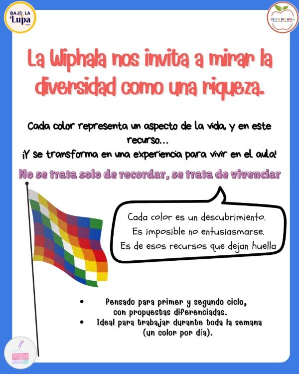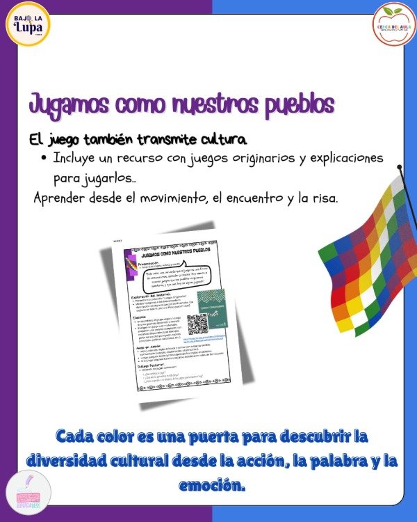 A través de la dinámica “Jugando con la Bandera Wiphala”, cada color de la bandera se convierte en una categoría con desafíos, actividades y experiencias que permiten conocer, valorar y disfrutar la diversidad cultural.