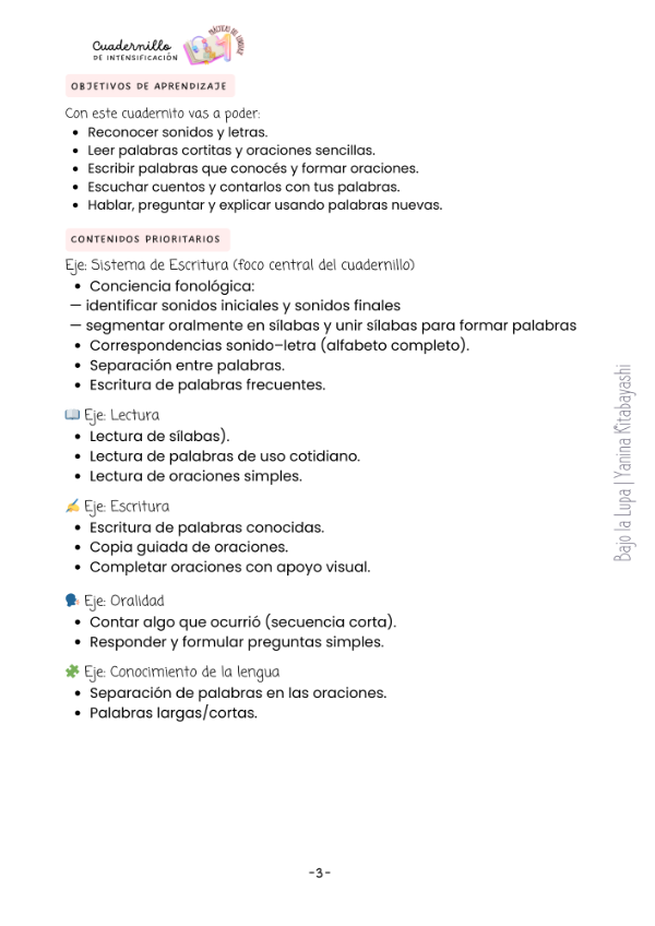 Cada ficha está pensada para estudiantes que requieren mayor acompañamiento, con consignas claras, apoyos visuales, espacios amplios y propuestas que integran lectura + escritura + oralidad.