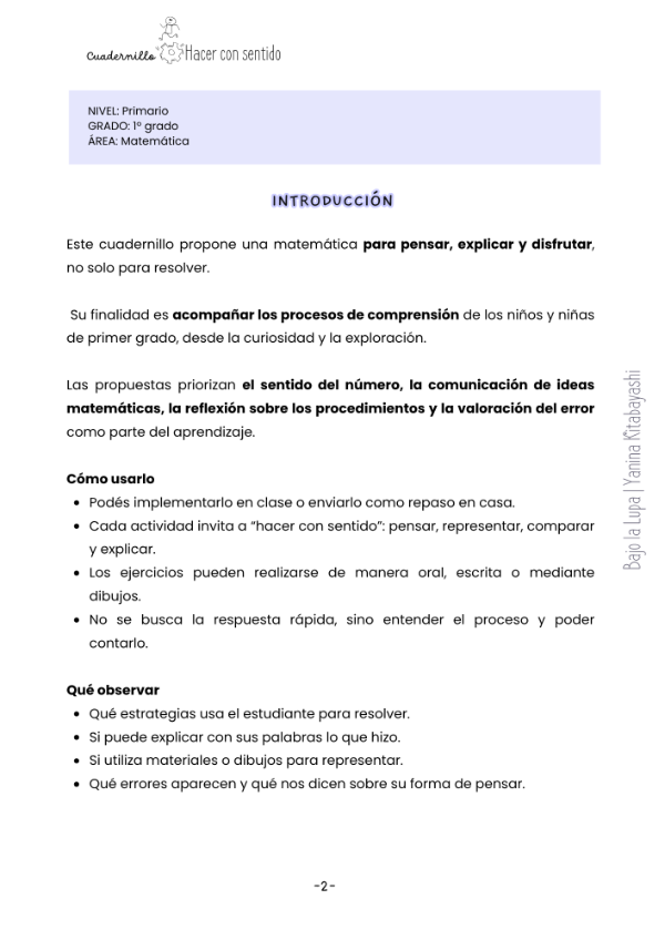 Cada propuesta invita a hacer con sentido, reflexionar sobre lo aprendido y disfrutar de la matemática a través del juego, la observación y la curiosidad.