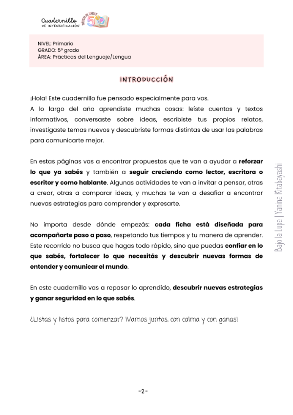 Cuadernillo de Intensificación – Prácticas del Lenguaje 5.º grado