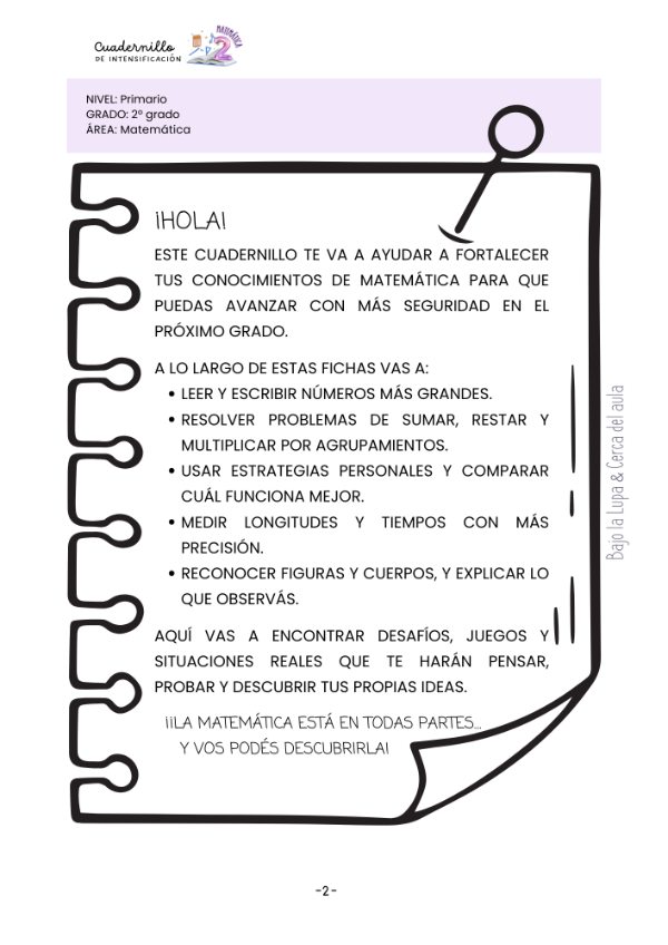 Cuadernillo de Intensificación – Matemática 2.º grado