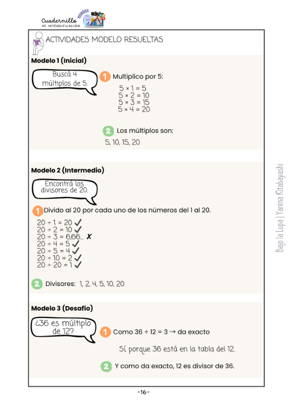 Incluye explicaciones claras, ejemplos resueltos paso a paso, actividades modelo, propuestas con apoyo, ejercicios autónomos, estrategias de resolución y materiales recortables.