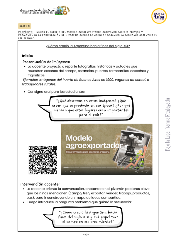 Descubrí una propuesta lista para aplicar que invita a tus estudiantes a comprender cómo se organizó la economía argentina entre 1880 y 1916, a través de investigaciones, análisis de fuentes, mapas, circuitos productivos y un cierre lúdico con la creación del juego “5 segundos para responder”.