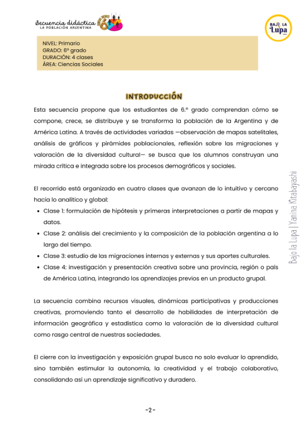Esta propuesta está diseñada para trabajar con estudiantes de 6.º grado los principales contenidos de Ciencias Sociales vinculados a la población en Argentina y América Latina.